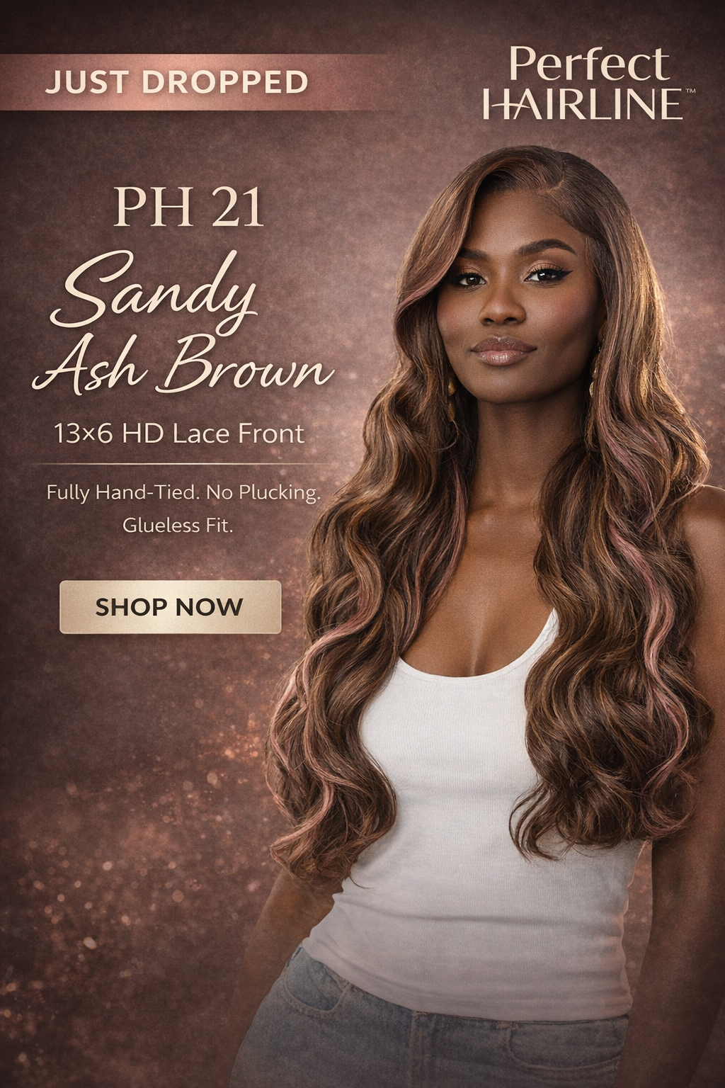 PH20 from the Perfect Hairline collection delivers soft voluminous curls with a luxurious salon finish. Designed with a fully hand tied 13x6 lace frontal this unit offers maximum parting space natural density and effortless styling versatility. 13x6 Fully Hand Tied Lace – Deep parting space for versatile styling HD Transparent Lace – Seamless natural melt against the scalp Glueless Ready – Pre attached elastic band for secure wear Baby Hairs Included – Realistic hairline with no plucking required 24 Inch Length – Long layered curls with full body movement Heat Resistant Fiber – Safe for styling up to 400F Frontal Effect Hairline – Natural density and comfortable ear contour Available in natural shades and specialty colors including Burnt Mahogany Ginger Icy Ash Blonde Mulberry ST Frosted Ash Brown and DR4 Golden Sand.