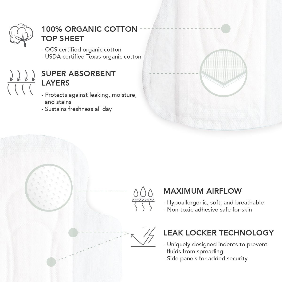 Rael Organic Cotton Menstrual Overnight with Wings - 2Pack-16total