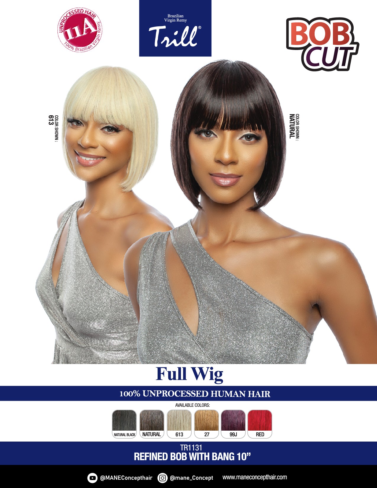 Mane Concept 11A 100% Unprocessed Human Hair Refined Bob With Bang 10" TR1131