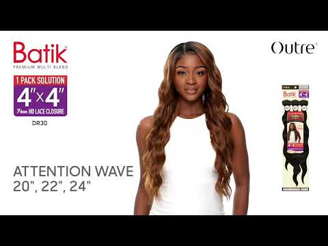 Batik Weaving Attention Wave 20"22"24"" + 4 x 4 HD Lace Closure